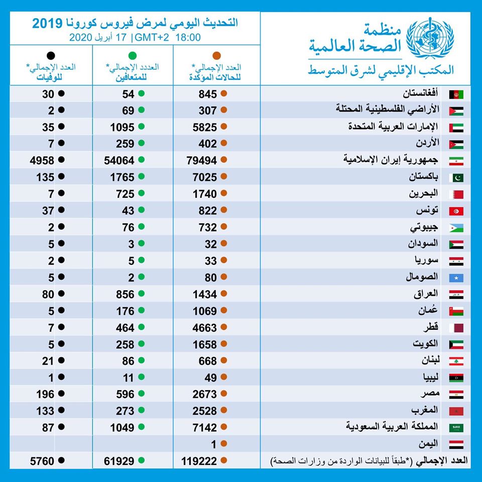 ورد للتو .. شاهد التحديث اليومي من منظمة الصحة العالمية حول عدد الإصابات بكورونا في الدول العربية من بينها اليمن.. صورة..